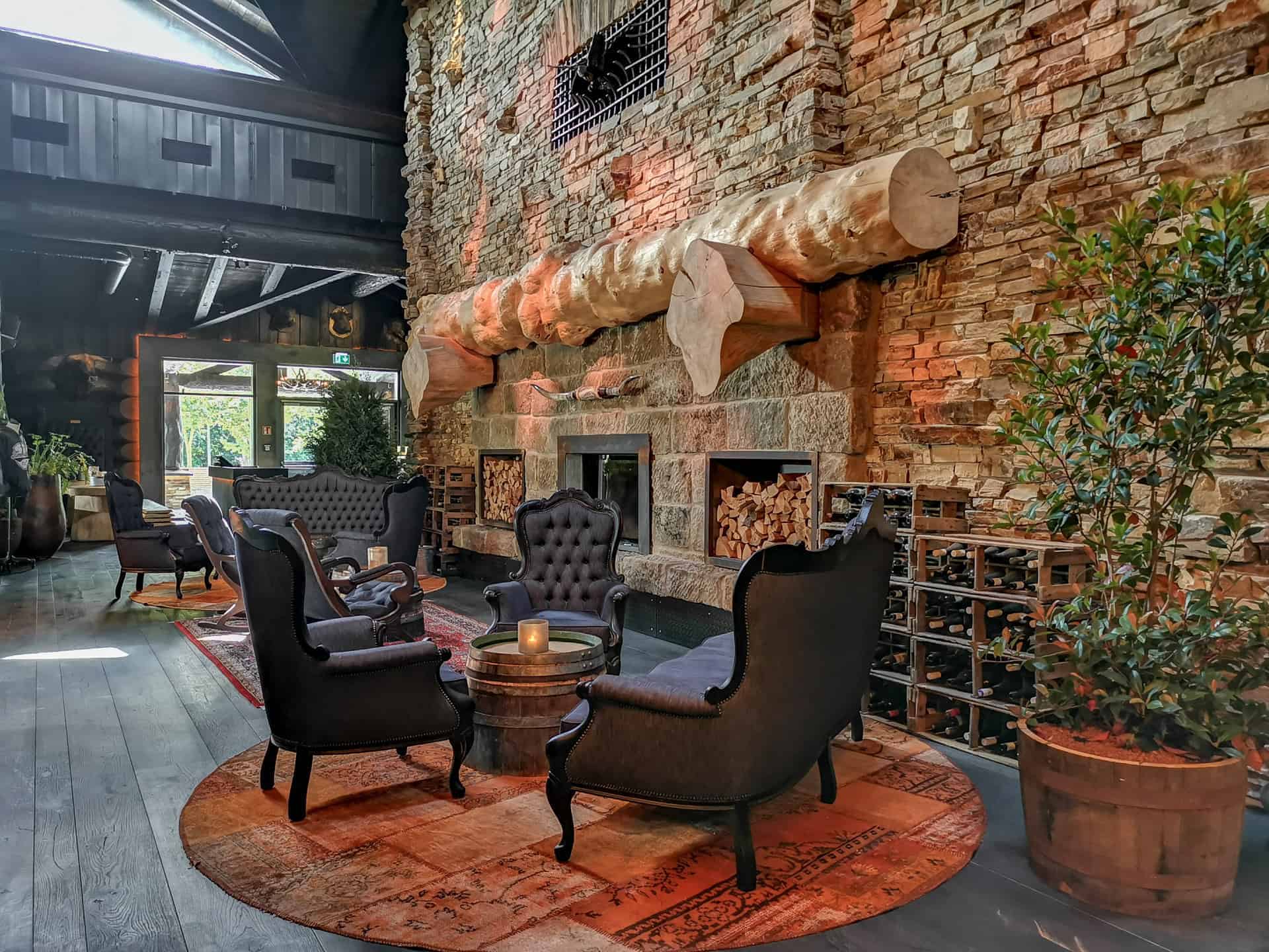 Neben dem innovativen Zement setzt Timberjacks konsequent auf Holz als Baustoff. Wälder filtern Kohlenstoffdioxid aus der Luft – genauso wirkt die Verwendung von Holz als Baustoff gegen den Klimawandel. Jeder Kubikmeter Holz bindet langfristig eine Tonne Kohlendioxid. Die massiven Holzkonstruktionen im rustikalen Blockhausstil wurden von der Firma Löffler Naturstammhaus errichtet – für das Unternehmen bereits das achte Timberjacks-Großprojekt.