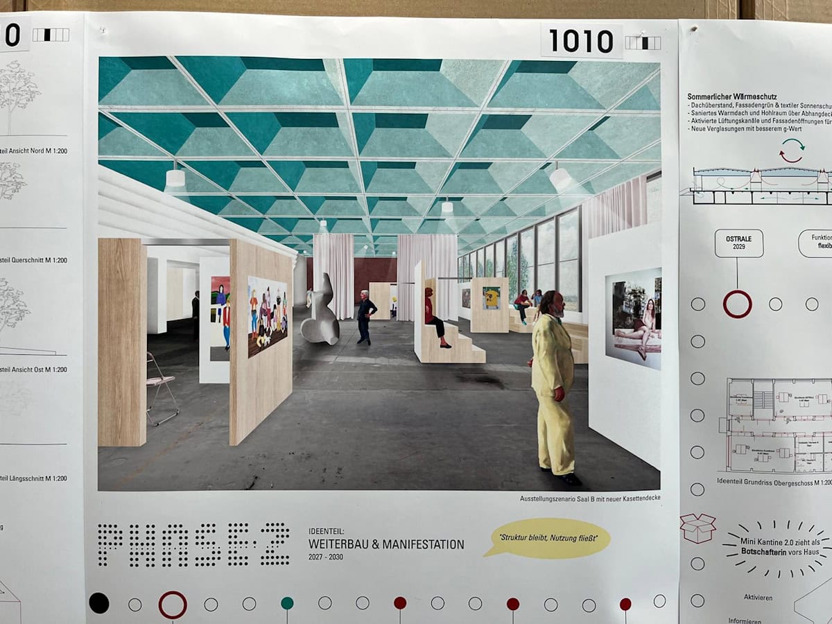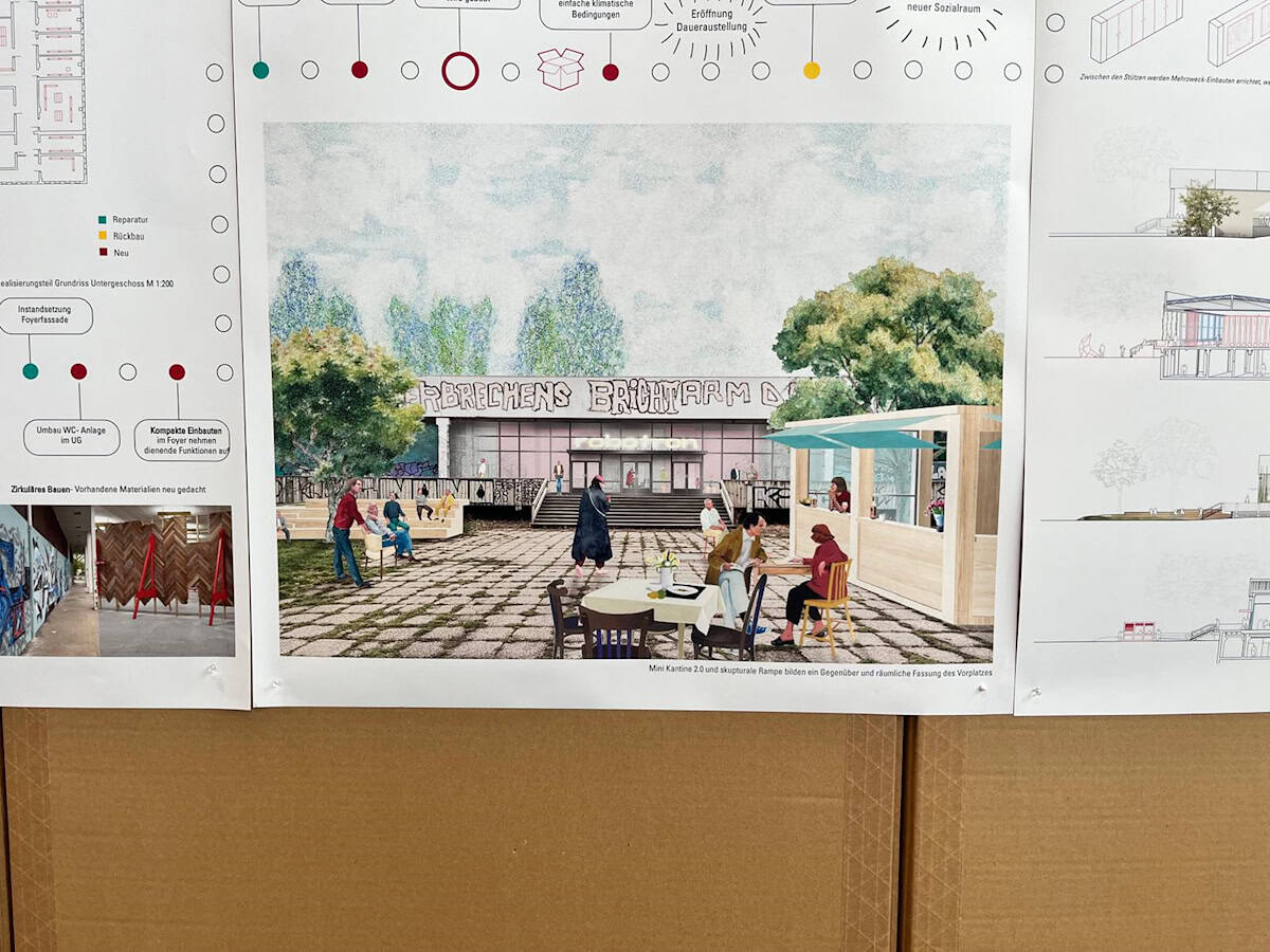 Die Wettbewerbsergebnisse bilden die Grundlage für die weitere Planung zur Revitalisierung der Robotron-Kantine. In einem ersten Schritt zur dauerhaften Nutzbarkeit des Denkmals startet im Sommer 2026 die Dachsanierung.