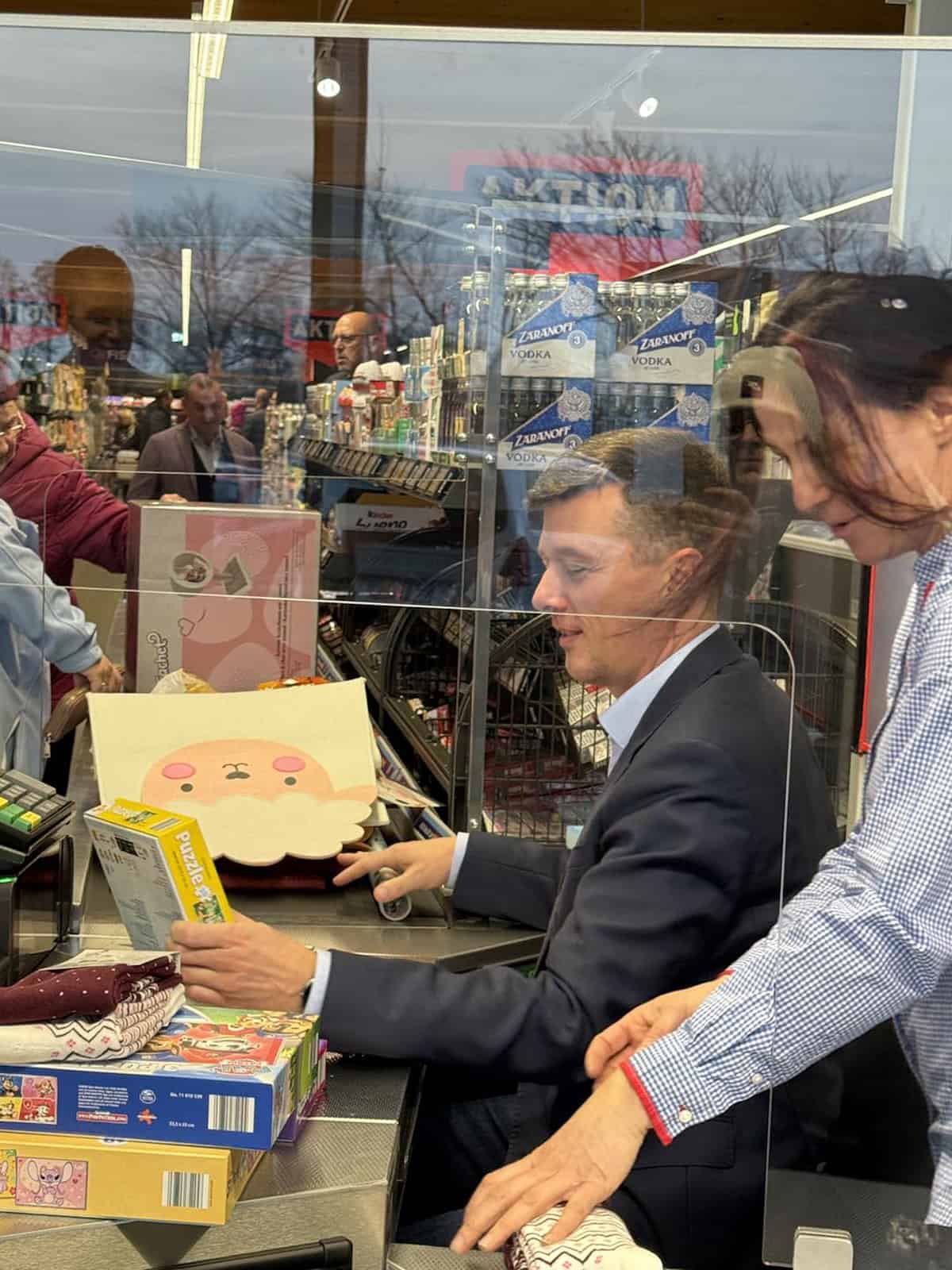 OB Markus Renner kassiert im Aldi.