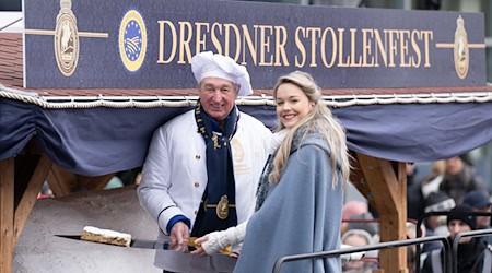 Er ist 2,8 Meter lang und wiegt mehr als zwei Tonnen: der diesjährige Dresdner Riesenstollen. Vor dem Anschnitt geht er zunächst in einem Festumzug auf Tour durch das Stadtzentrum. | mehr