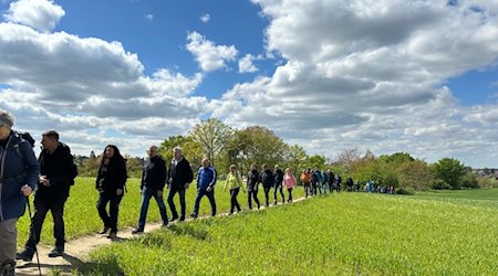 Zum ersten Comuneo Wandertag in 2024 kamen rund 50 Menschen und ein Hund. Bei sonnigem Wetter ging es rund 10 Kilometer vom Heidefriedhof zum "WALDMAX".