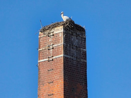 Der erste der beiden Störche ist vorfristig angekommen. Die Feuerwehr hat ihm bereits das Nest vorbereitet. | mehr