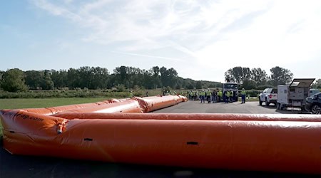 In Grimma erproben Einsatzkräfte das mobile Hochwasserschutzsystem «Beaver». Wie der Kunststoffschlauch im Ernstfall Gebäude und wichtige Infrastruktur schützen soll. | mehr