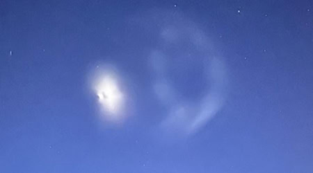 Himmelsphänomen: Das Foto zeigt eine Falcon 9 Rakete mit abgelassenem Treibstoff etwa drei Stunden nach dem Start über Riesa. | mehr