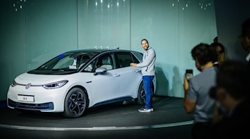 Der erste Dresdner ID.3 Kunde Christian Stadler bei der Fahrzeugübergabe seines Fahrzeugs in der Gläsernen Manufaktur Dresden | mehr
