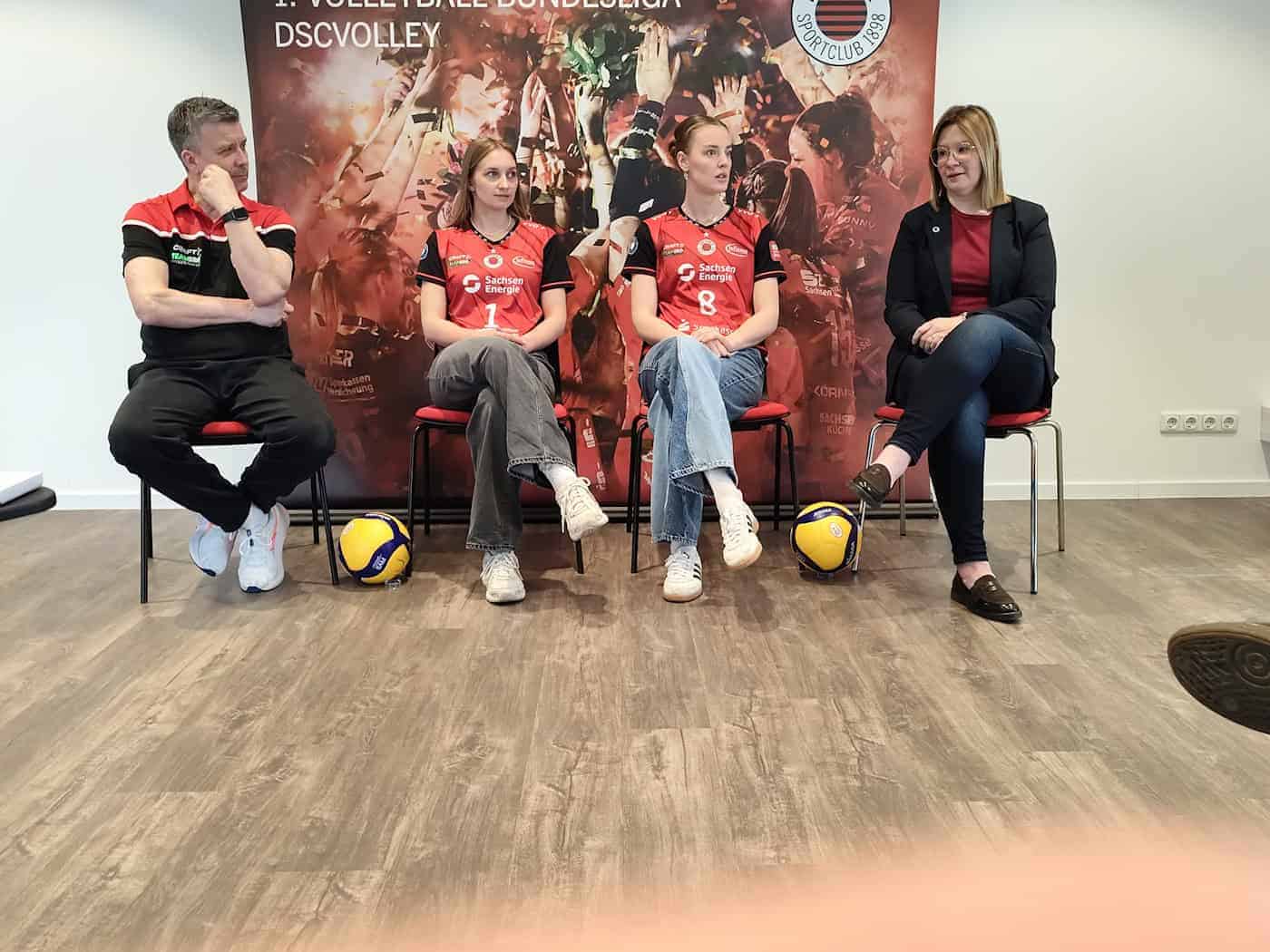 Am Freitag verkündete der DSC im Rahmen einer Pressekonferenz die Vertragsverlängerungen mit zwei Leistungsträgerinnen. Kapitänin Patricia Nestler und die holländische Außenangreiferin Jette Kuipers unterzeichneten jeweils neue Arbeitspapiere für die kommende Spielzeit. "Für mich war es keine schwere Entscheidung, ich fühle mich superwohl hier, wir haben hier sehr professionelle Bedingungen und ich habe die Chance, mich sehr gut weiterzuentwickeln", sagte Libera Patricia Nestler, die aus Radebeul stammt. Sie geht also bereits in ihre dritte Saison bei den DSC-Profis, Kuipers in ihre zweite.